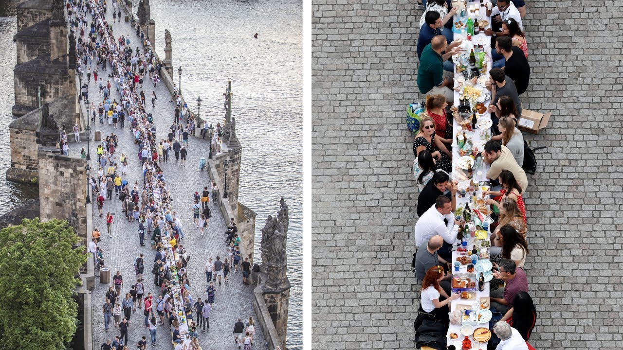 Карловом мосту тысячи людей собрались за 500-метровым столом. В основном,