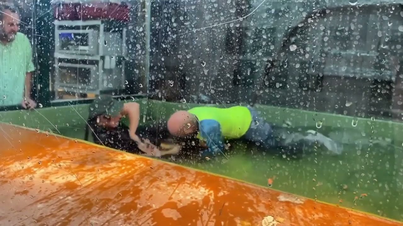Благодаря действиям мужчин, смотрительнице удалось вырваться и они покинули вольер.