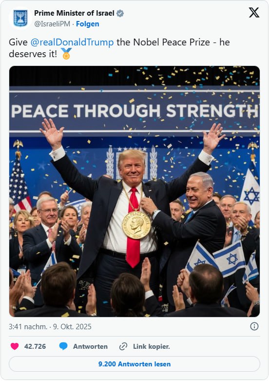 "Дайте Дональду Трампу Нобелівську премію миру — він її заслужив!"