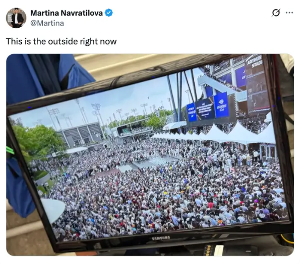 Довгі черги біля входів залишили тисячі людей за межами стадіону навіть тоді, коли матч уже стартував. Тенісна легенда Мартіна Навратілова поділилася фото біля стадіону, де натовп людей не зміг потрапити всередину через безпекові заходи пов’язані з Трампом.